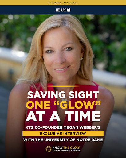 Co-founder Megan Webber’s personal journey is at the heart of KnowTheGlow, helping turn one moment into a worldwide effort to ensure no child’s vision is lost because a warning sign went unseen. Today, that mission continues to connect families, doctors, and communities across the globe in the fight for earlier detection and action and the partnership with the faculty and students at the University of Notre Dame continues to grow.